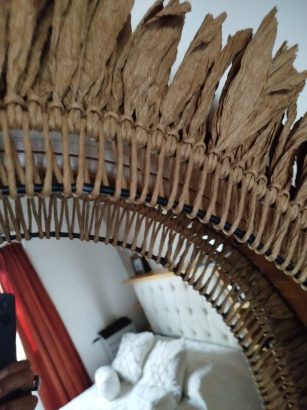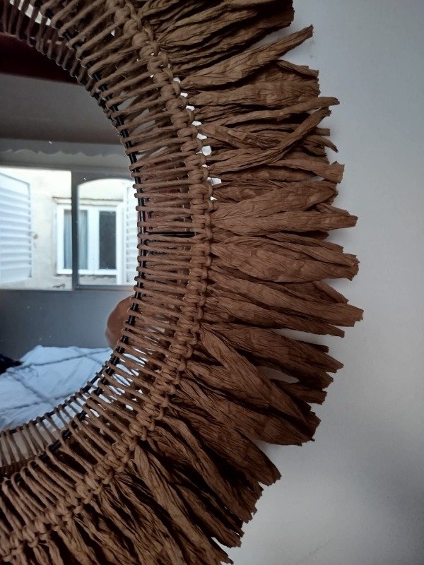 Descubre la belleza y calidez de nuestros espejos con detalles en yute, diseñada para aportar un toque de elegancia natural a cualquier espacio.