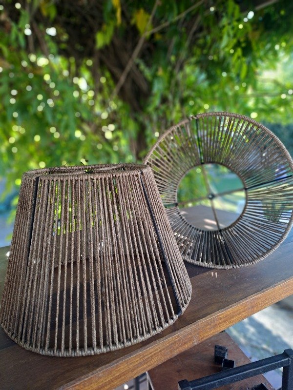 Fabricada artesanalmente con yute de alta calidad, cada pieza es única y destaca por su textura rústica y acogedora. El diseño es perfecto para proporcionar una iluminación suave y agradable, creando una atmósfera cálida y relajante.